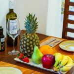 The balcony with table and chairs, offers sweeping panoramic views on the Cretan Archipelago, as well as on the lush landscape.