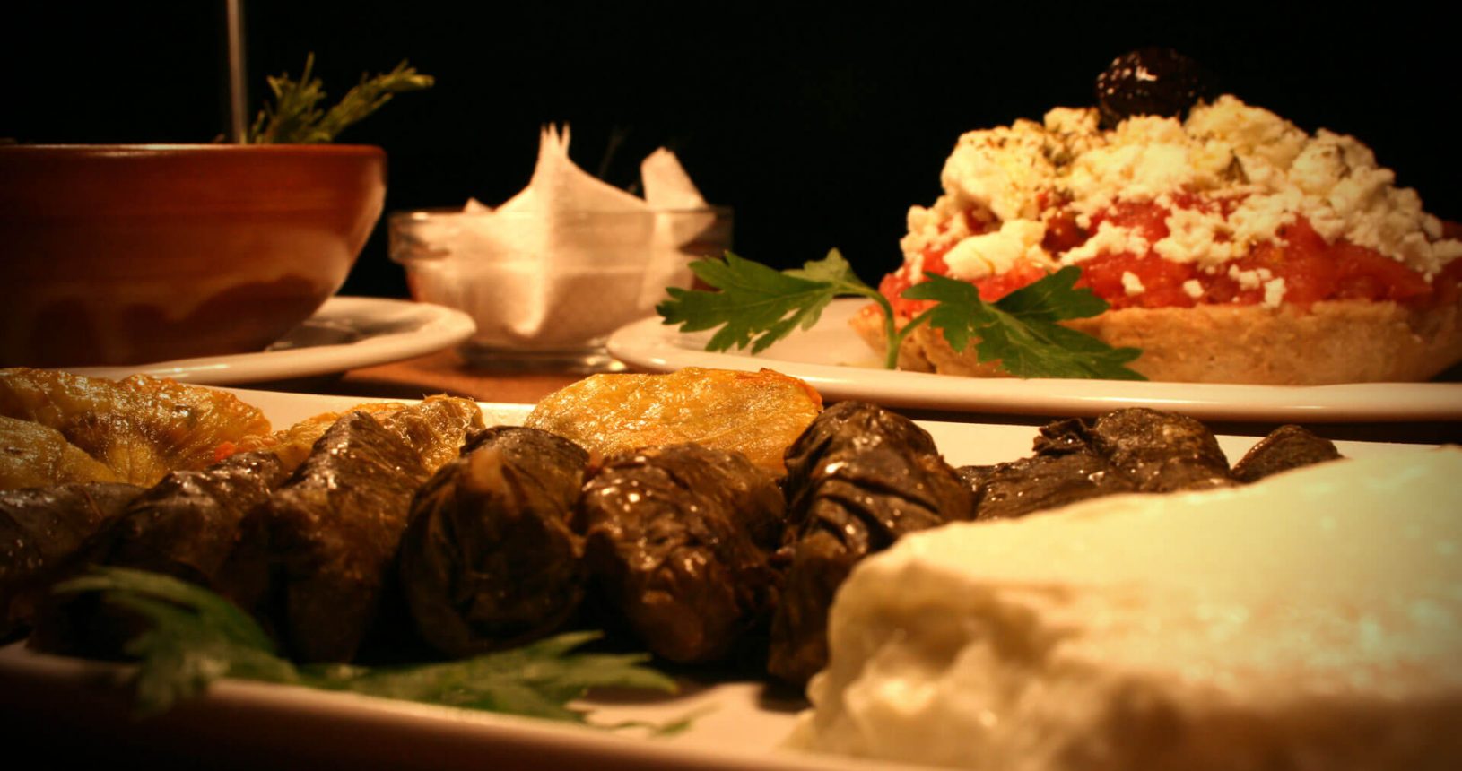 Full board of accommodation packet with Cretan cuisine tastes in a Mediterranean diet menu at Kastro Restaurant in Panormo, next to Rethymno.